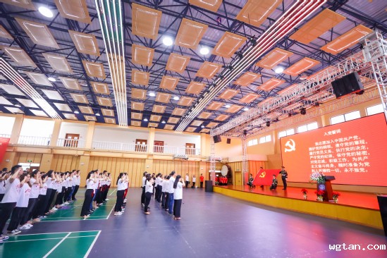 “我志愿加入中国共产党,拥护党的纲领,遵守党的章程,履行党员义务……随时准备为党和人民牺牲一切,永不叛党。”在党委书记陆建非的领誓下,学校新发展党员面向鲜红的中国共产党党旗进行了入党宣誓,老党员们也一同举起右拳,重温入党誓词,铿锵有力的誓言声响彻体育馆。
