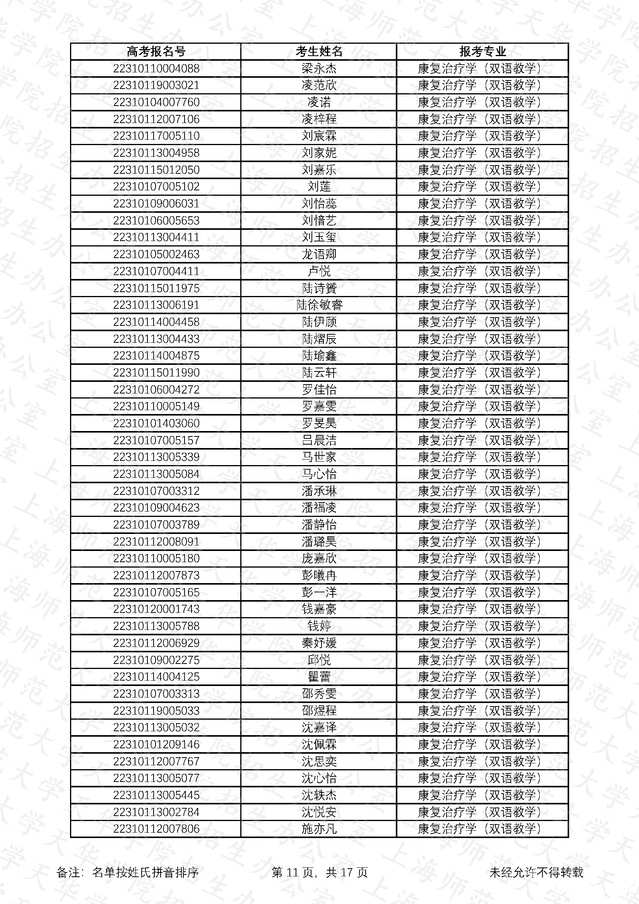 | 1 | 学前教育(双语教学) | ≥276分 | 考生名单见附件 |