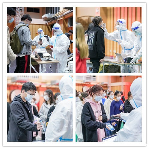 本次工作按照安全有序、分批分流的原则,由志愿者全程引导,师生提前登记,填写个人信息,规范接受核酸检测。医护人员坚守岗位,严格按照检测规范流程进行信息核对和核酸采样。广大师生积极配合,核酸检测现场秩序井然。