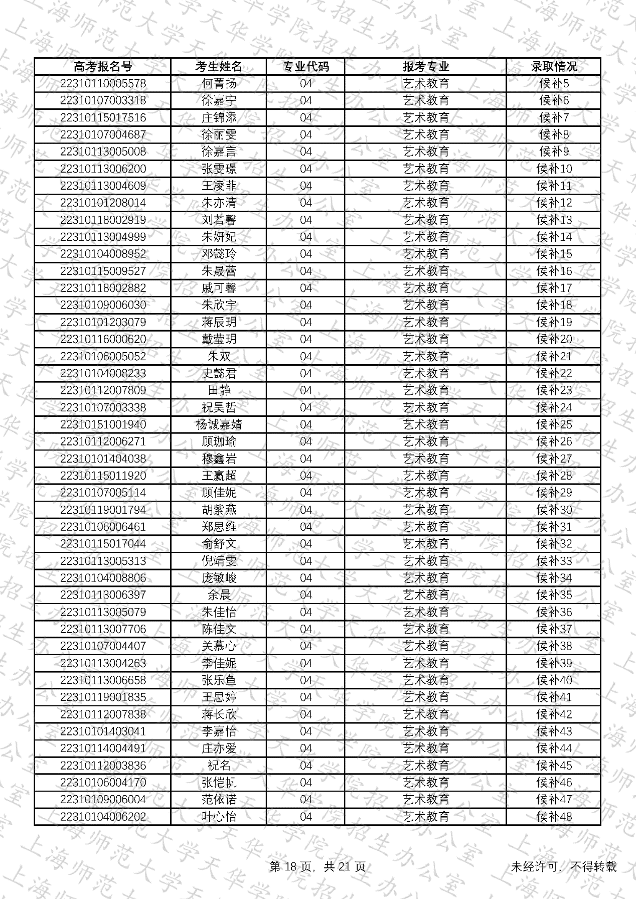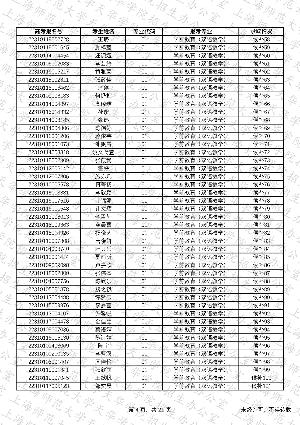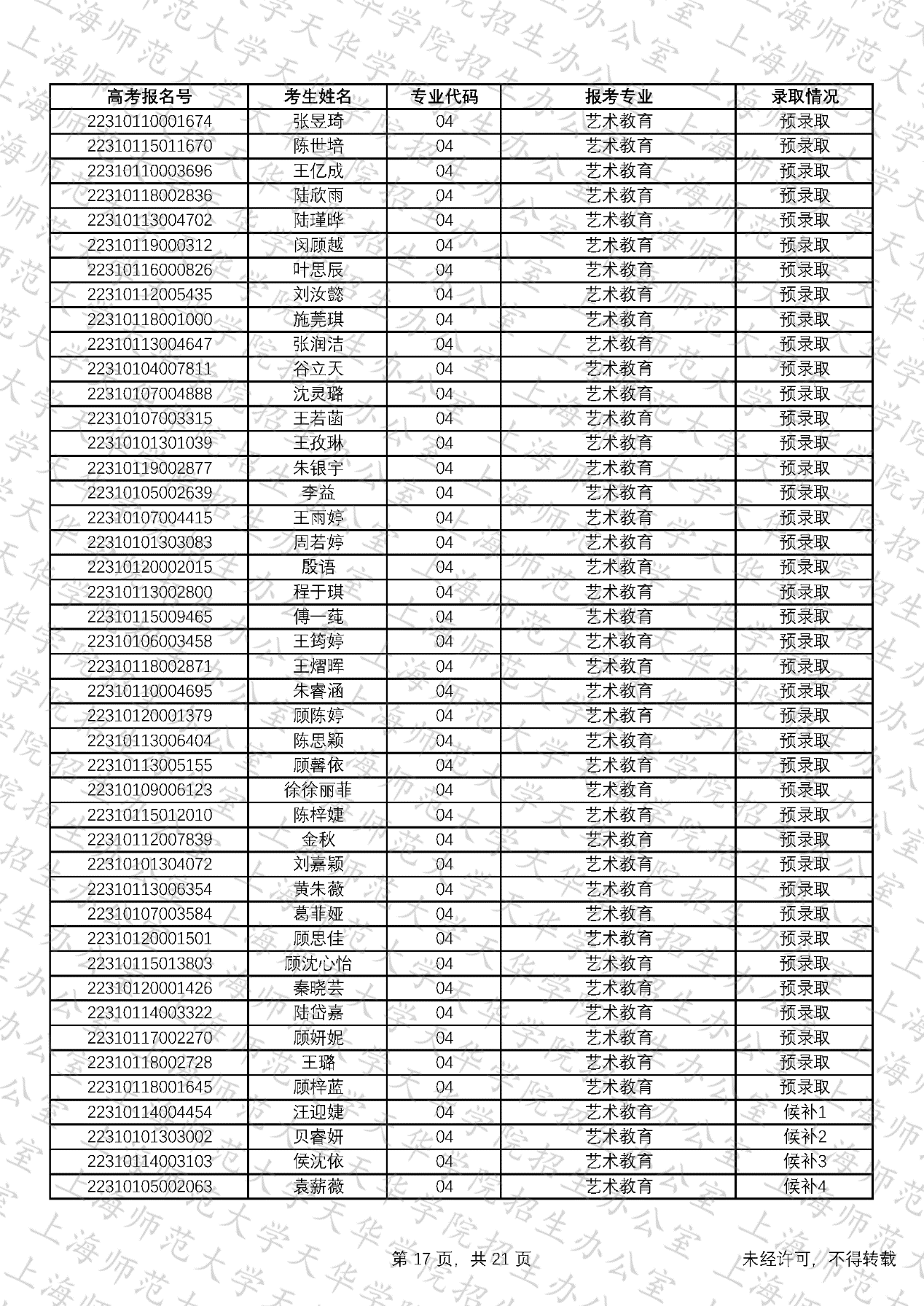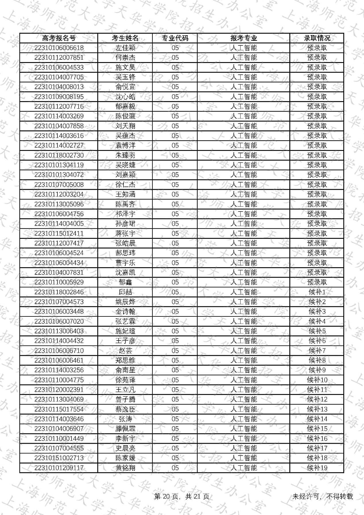 预录取考生名单、候补资格考生名单