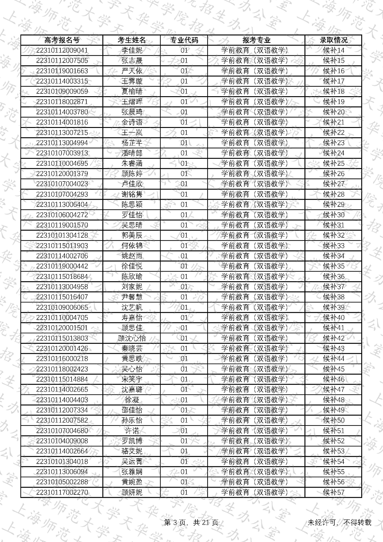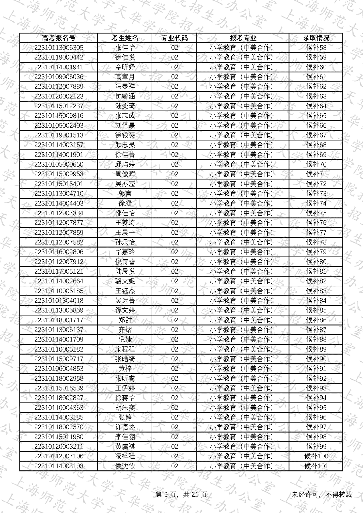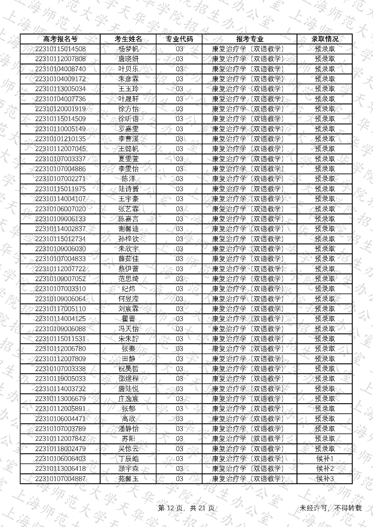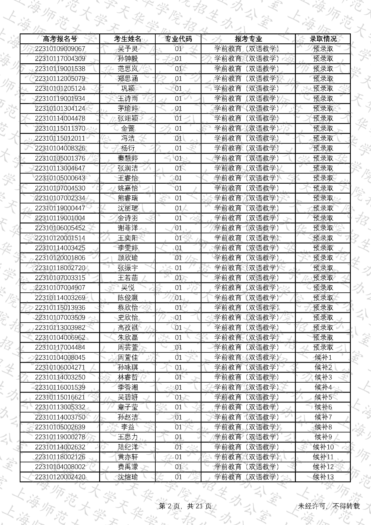 预录取考生名单、候补资格考生名单