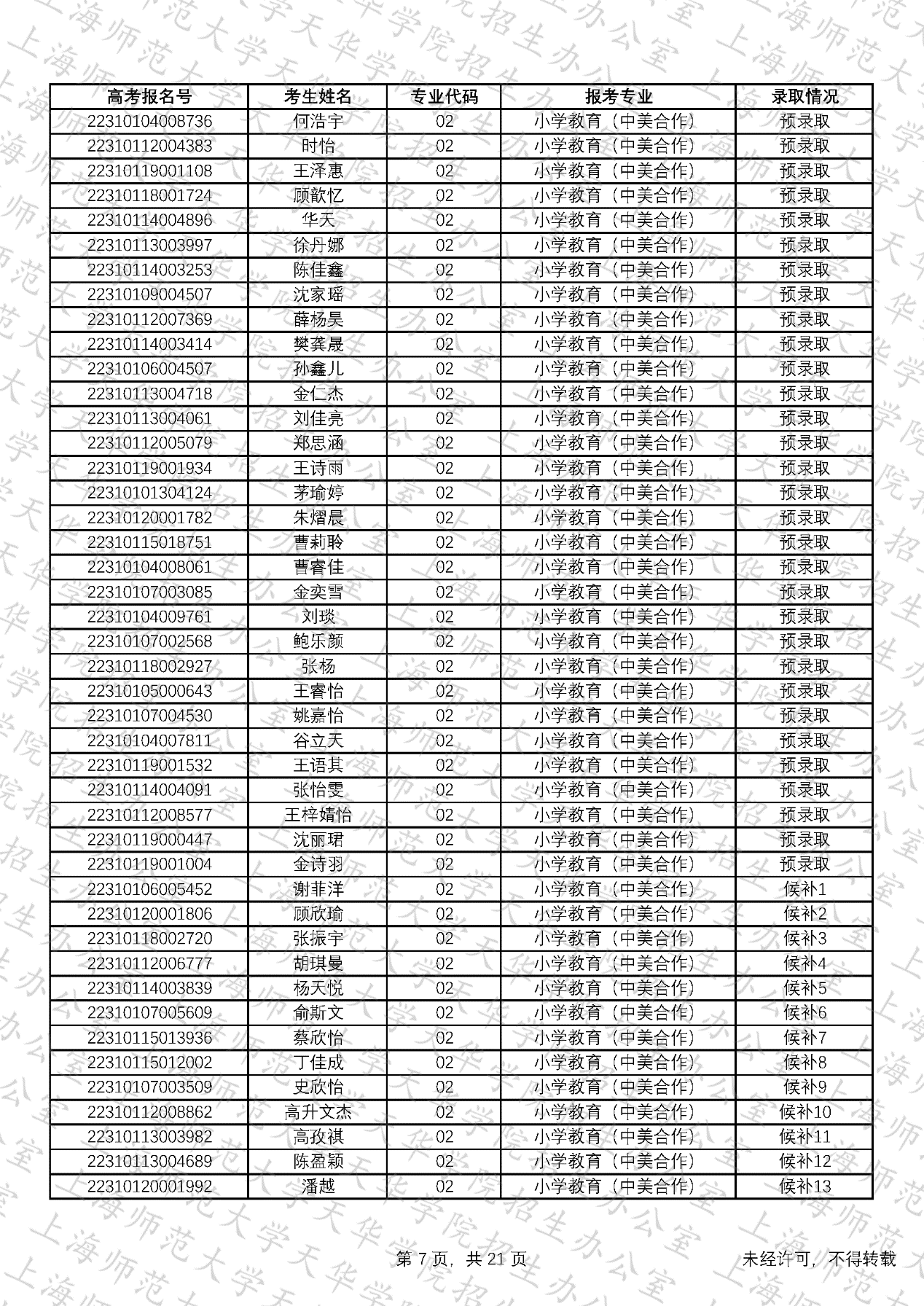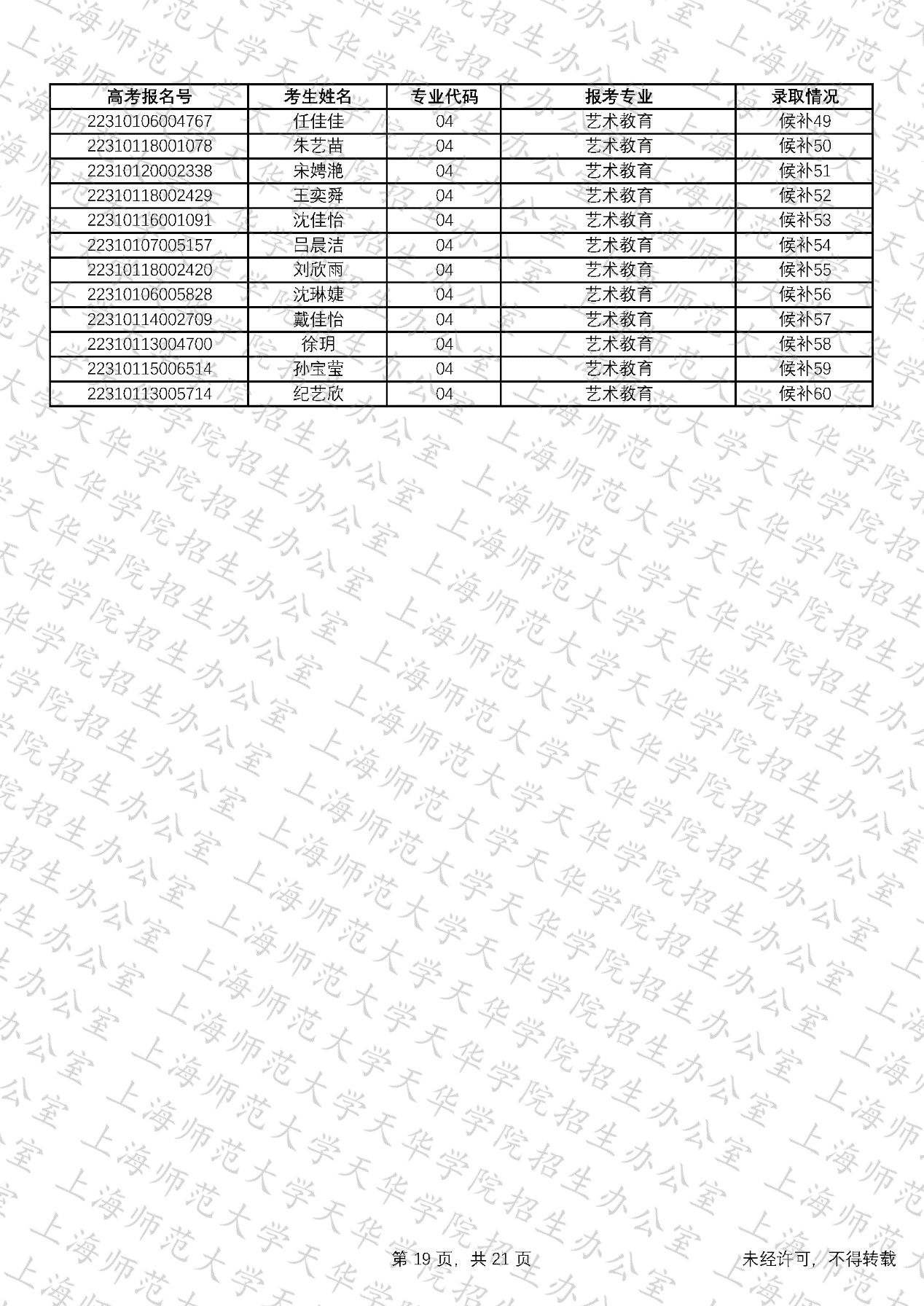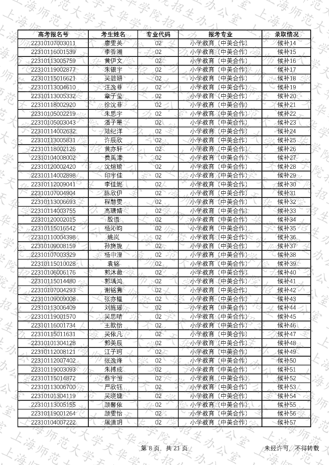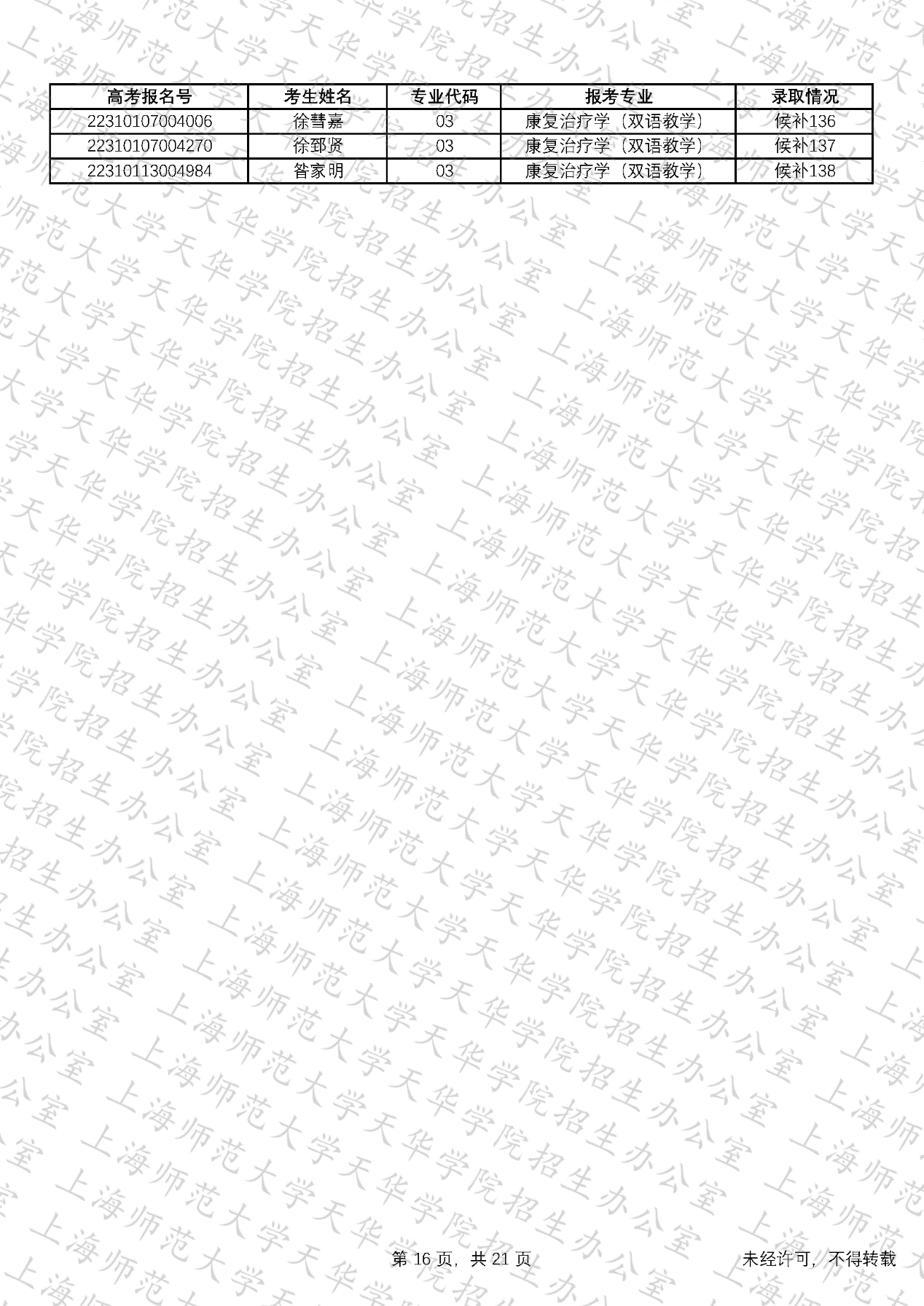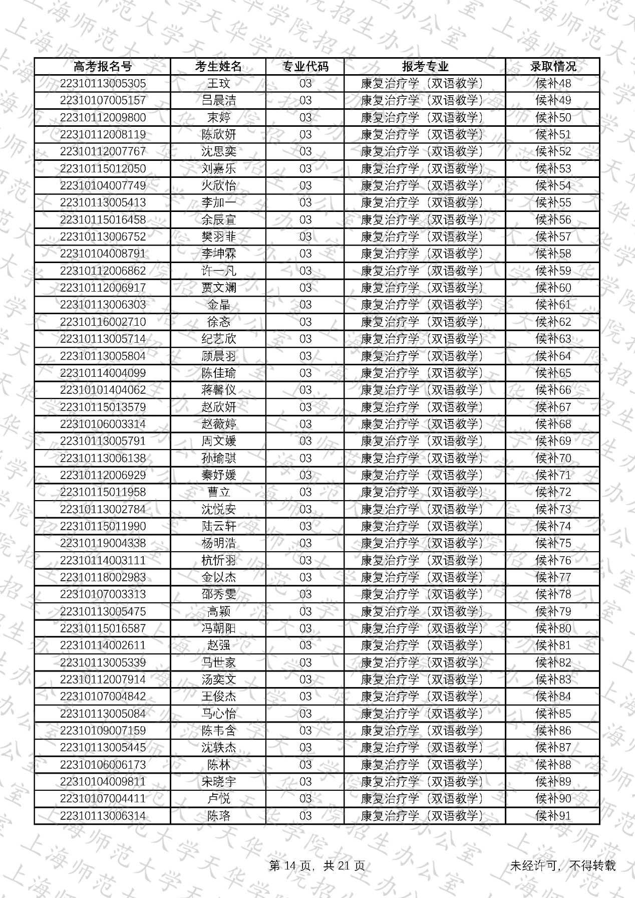 预录取考生名单、候补资格考生名单