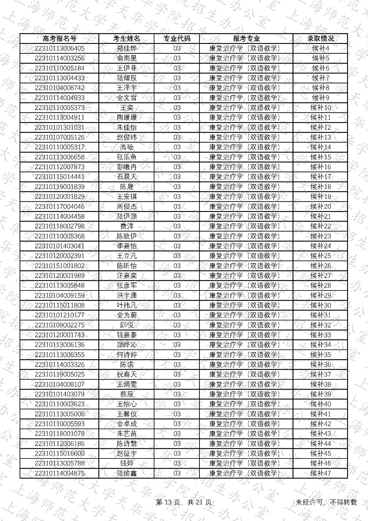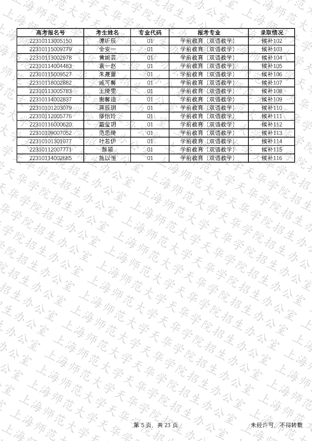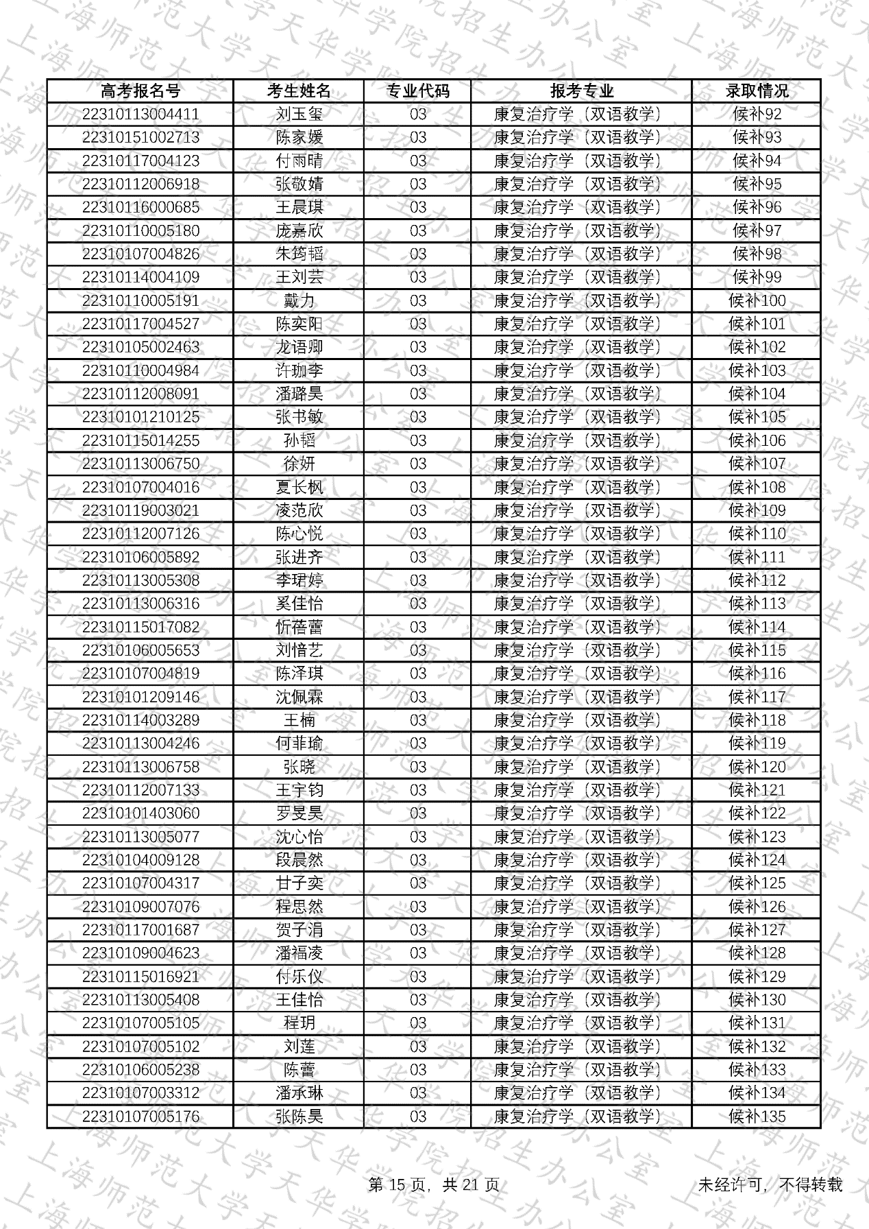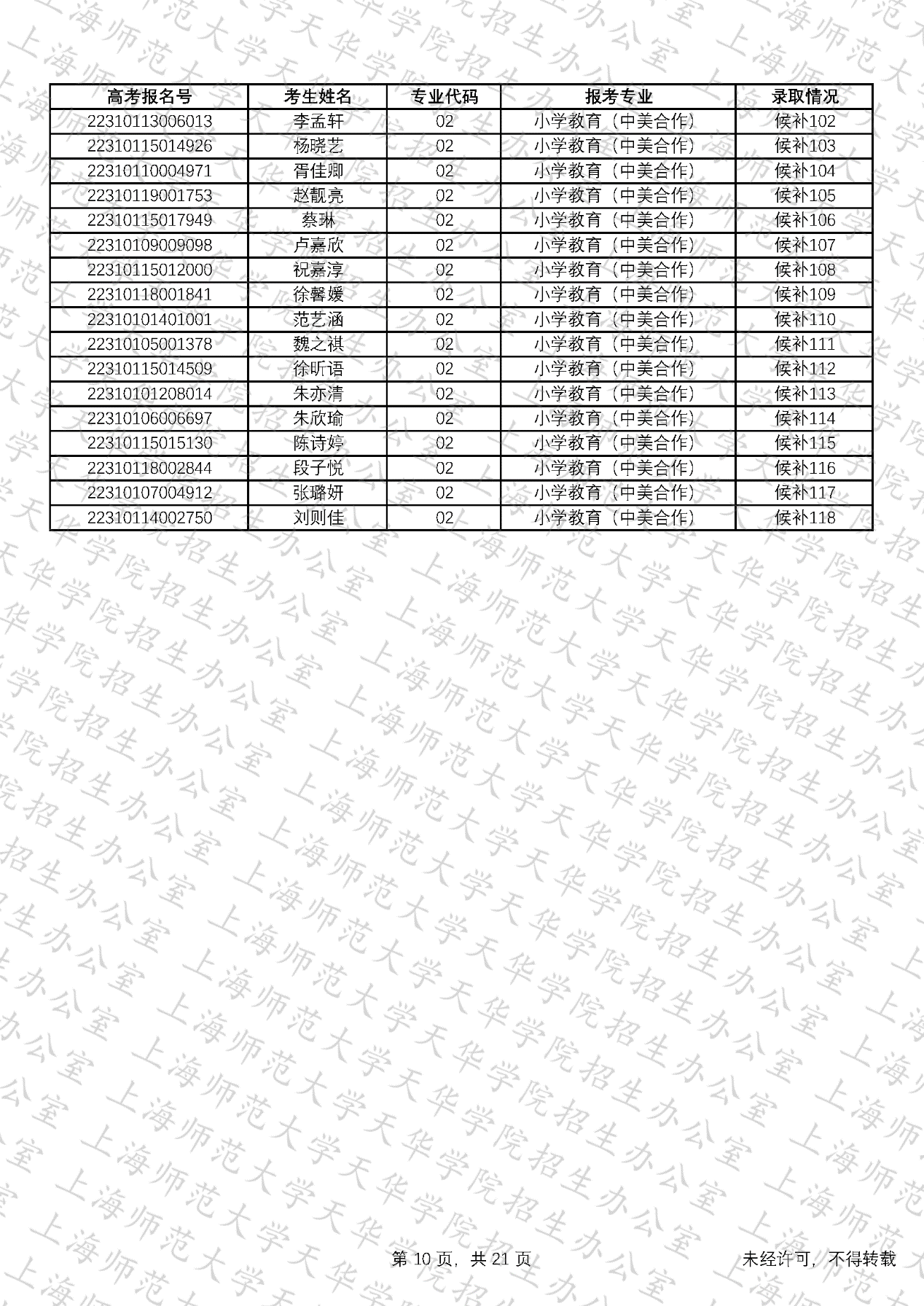 预录取考生名单、候补资格考生名单