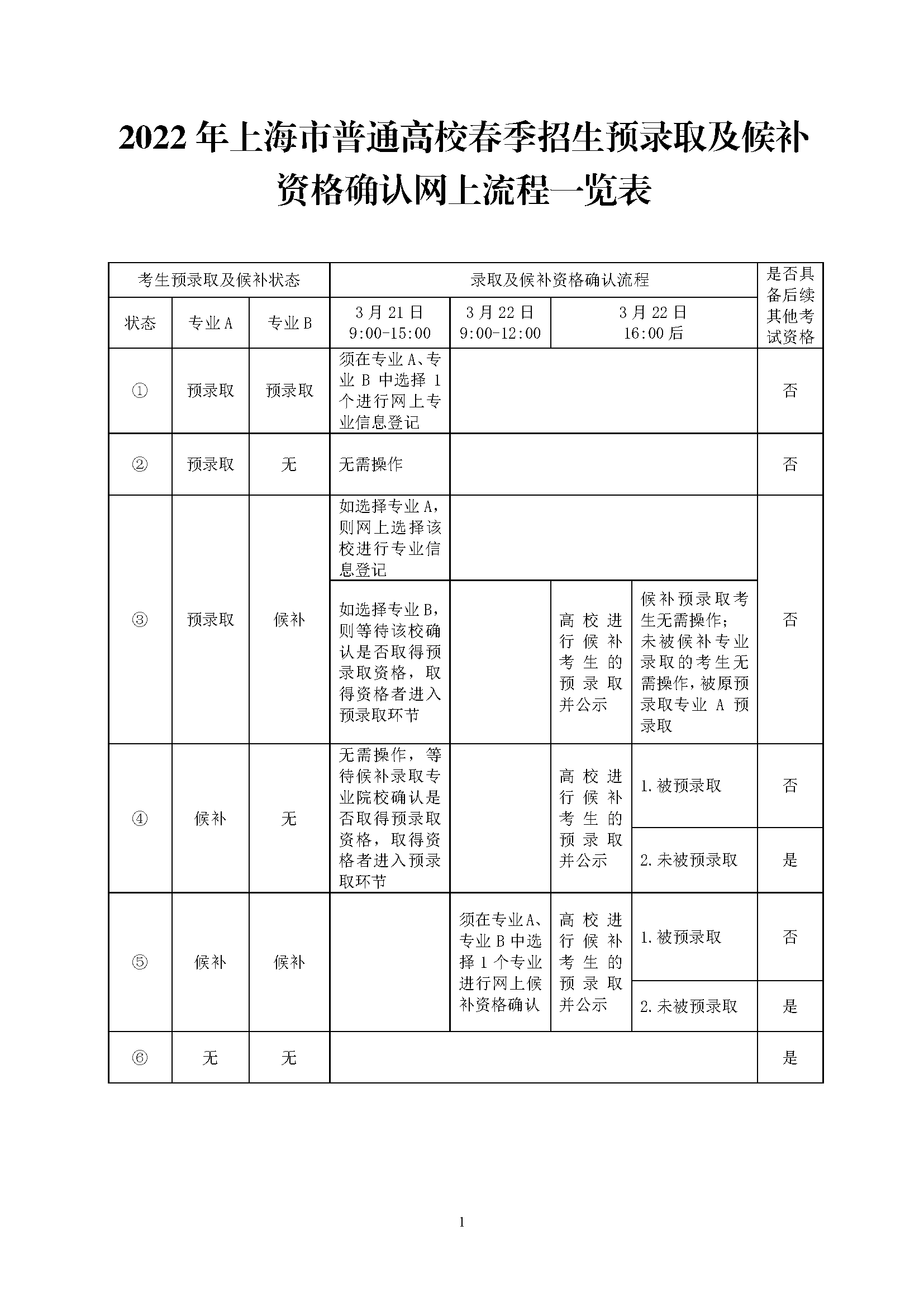 5. 取得两个专业候补录取资格的考生,须在 3 月 22 日9:00-12:00,在网上选择其中一个专业进行候补资格确认,如院校确认其最终取得预录取资格,无需操作,默认被预录取(注意:确认候补资格的考生不一定会被录取,要根据该校预录取考生的录取确认情况而定)。