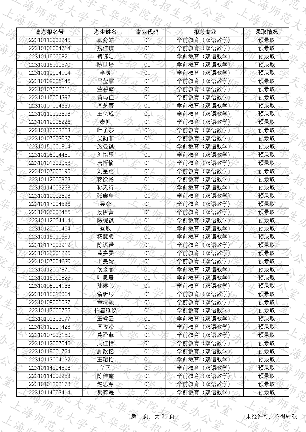 专业代码 | 专业名称 | 预录取 | 候补资格 |