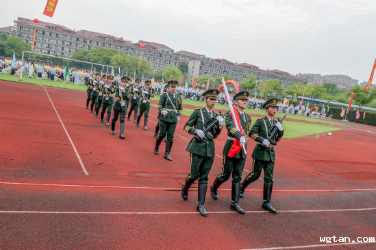 “请全体起立,面向国旗,奏唱国歌!” 伴随着交响管乐团激昂的乐曲声,校国旗护卫队昂首阔步护卫着国旗,迈着铿锵有力的步伐走向升旗台。全体师生迎着朝阳,面向国旗,肃立行礼,齐唱国歌。在嘹亮的国歌声中,鲜艳的五星红旗冉冉升起,开学典礼正式开始。