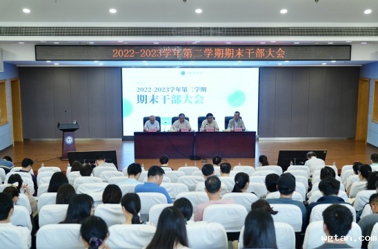 7月5日上午,学校在晖华楼报告厅召开2022-2023学年第二学期期末干部大会,总结各条线重点工作,交流分享经验成果。学校执行董事长石伟平、党委书记陆建非、校长叶才福、总校监郭伟奇出席会议,全体校务委员会成员、中层以上干部、二级学院正副院长、职能处室正副处长、党总支正副书记、专业主任以及助理级干部参加会议。会议由执行董事长石伟平主持。