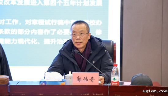 总校监郭伟奇从推进现代大学制度建设,完成章程文本修订工作;参与干部选聘工作,提高学校选人用人公信度;守护办学理念,推动全面提高人才培养质量;维护章程执行,保障决策程序运行规范;聚焦重要工作,助力各项工作落实见效等五个方面总结了监察委本学期工作的具体举措,反思了在发挥作用不够到位,监督检查抓手不实,监督检查不够深入细致等方面存在的问题,表达了要进一步提升监督治理的效能,促进学校各项事业取得更大的进步和发展的决心。
