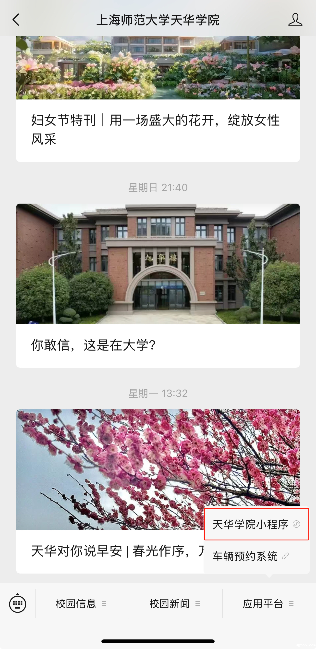 二是通过学校微信公众号链接或直接搜索“天华学院”微信小程序进入“天华AI”;