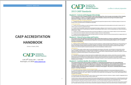 所提到的这些相关标准,InTASC标准主要针对新入职教师,NBPTS标准主要针对职后教师发展;而参与到CAEP认证中来的17个专业协会(SPA),更是教师教育专门领域(如学前教育、中等教育、天才儿童教育、教育领导力、教育技术、学校图书馆、健康教育及各学科教育等)的权威、专业化认证机构。CAEP让自己的认证标准与这些有影响力的国家、州际和细分专业领域现行标准保持一致,一方面体现了从教师培养到新教师入职,再到优秀教师职业发展,其培养标准是顺畅衔接的,另一方面把行业细分专业领域认证机构的智慧和专长也吸收到了自己的认证过程之中,为我所用(在认证过程的主要特点里还会进一步阐述)。