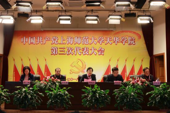 2018年1月17日上午8:30,中国共产党上海师范大学天华学院第三次代表大会预备会议在明华楼五楼报告厅召开,党委换届工作领导小组组长韩晓玉主持会议,副组长陆建非、叶才福,组员曹云林、许岳等同志在主席台就座。