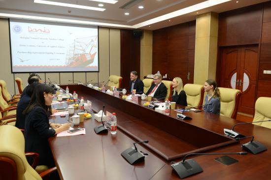 2018年4月3日,丹麦大学Dania Academy, University of Applied Sciences学院院长Anders Graee Rasmussen、旅游专业主任Paul Aspinall、国际部主任Lise Bøgild-Jakobsen来访我校,对两校的合作进一步洽谈。校长叶才福、管理学院院长程葆青、国际交流处处长胡珍、旅游管理专业主任郭家秀热情接待。