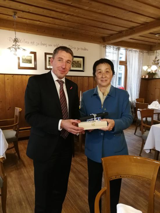 在埃尔福特市手工业行会访问期间,行会总裁马尔切里克先生一行亲临基地门口迎候,双方在各自介绍情况后,就学生和教师技能培养的细节进行了交流,一致期待双方的合作。