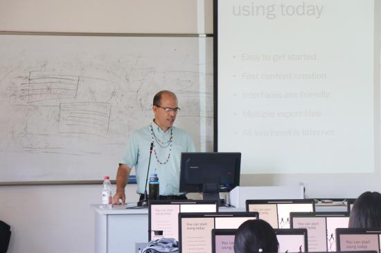 接下来,Gregory Zobel教授与大家分享了“内容创建”的几个教育技术,如ThingLink, Online Chart Tool, Big Huge Labs。王淑艳教授与大家分享了有关“内容分享”、“动画制作”、“评价”等教育技术,如Zoho, Padlet, Powtoon, Vocaroo, ClassDojo, TestMoz, Poll Everywhere, Wenjuanxing。