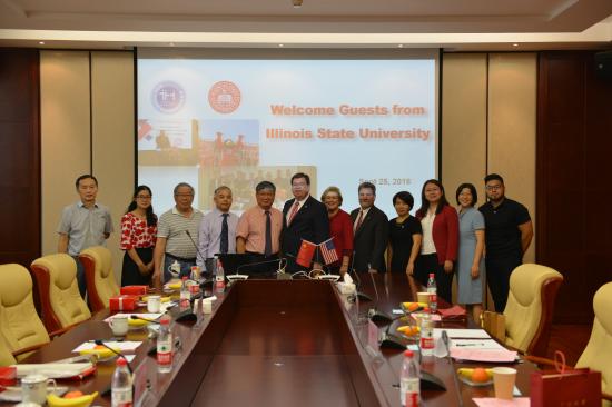 2018年9月25日,美国伊利诺伊州大学的校长Larry Dietz携夫人、分管教学副校长Jonathan Rosenthal,国际生录取中心执行主任Yimin Wang应邀来访我校,并共同举办两校视觉传达设计专业合作项目2018级学生开学典礼。