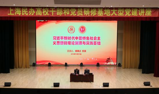 为加强上海民办高校党建思想教育,充分发挥上海民办高校干部和党员研修基地宣传教育和辐射作用,10月19日上午,基地在我校大礼堂隆重举办大型党建专题讲座,邀请上海市委讲师团成员袁秉达教授主讲“习近平新时代中国特色社会主义思想的理论渊源与实践基础”,我校党委书记陆建非教授主持会议。上海市各民办高校干部和党员近1000人到场聆听讲座。