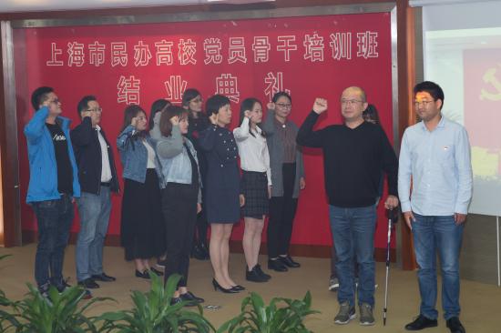 上海市民办高校干部和党员研修基地党员骨干培训班(上海工商外国语职业学院片区)于9月28日开班,经过10个单元的培训活动,顺利完成了教学计划中的各项学习任务,于10月20日上午在上海工商外国语职业学院北区8号楼二楼报告厅举行了结业典礼。