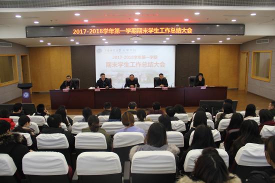 1月16日上午9:00,学保处在晖华楼报告厅隆重召开2017-2018学年第一学期学生工作总结大会。校党委副书记兼学保处处长曹云林、校监兼学保处副处长周烨刚、学保处常务副处长刘天翔、校团委书记兼学保处副处长包静波、学保处副处长刘洪伟,以及各二级学院党总支书记,全体正副辅导员们参加了本次会议,大家齐聚一堂,回顾学期重点工作,总结经验,展望未来。会议由学保处常务副处长刘天翔主持。