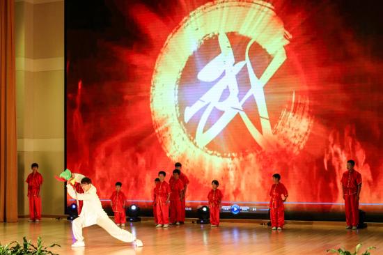 伴随着浑厚的鼓点,晚会在主持人豪迈的朗诵词“少年强则国家强、少年兴则国家兴”中拉开帷幕。开场秀《精武少年》,彰显出了中华少年一代的精神面貌,将全场的气氛引入了欢腾的氛围之中。