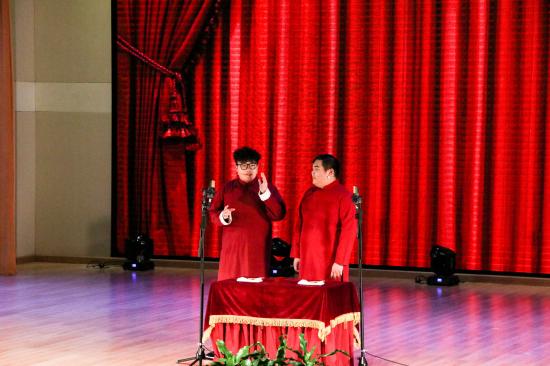 相声《笑谈经典》,两位同学用说学逗唱,讲述学校的经典阅读活动,彰显文化天华。