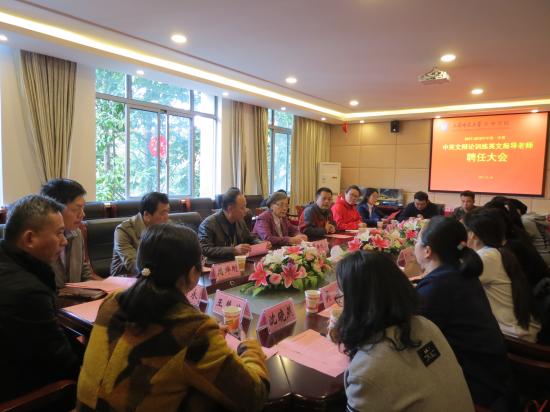 11月15日中午12:20,学校在月华楼270会议室隆重举行了中英文辩论训练英文指导老师聘任大会。党委书记韩晓玉、学校校监兼语言文化学院院长史文、党委副书记兼学保处处长曹云林、校监兼学保处副处长周烨刚、教育学院副院长韩苏曼,各二级学院的党总支书记、校中英文辩论训练指导老师华芸、以及来自语言文化学院、教育学院的6名英语教师参加了本次大会。会议由校党委副书记曹云林主持。