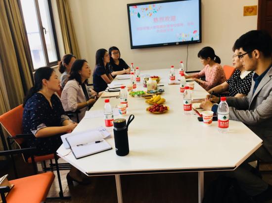随后,龚春蕾副校长与滕薇院长就我校的现有资源,向华师附属学校的老师们介绍了我校中美合作办学的培养模式、培养目标及学生的现阶段发展情况。龚春蕾副校长表示:我校首届中美合作班的学生目前正在美国研修,学生现今不仅具备了一定的专业能力、双语能力,对于国际学前教育也有一定认识,是较适合华师双语学校所需师资的。双方的科研及课程合作事宜可以以我校的“儿童发展研究院”为平台,招募双方的教师一起参与课程内容的选择、课程的实施与评价等。