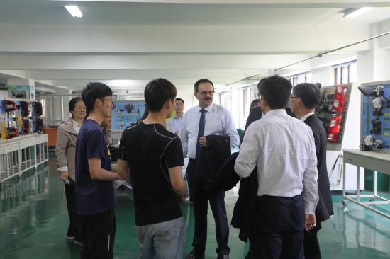 会后德国访问团一行参观了汽车服务工程实训中心、图书馆和美丽的校园。HWK汽车专业主管Siegfried Reuschel对我校汽车服务工程实训中心予以很高的评价,很好地对接了德国的培训要求。