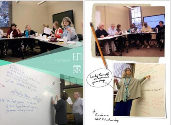12月5日的认证委员会(Assessment Committee)专题会议重点讨论了教育学院的Disposition Rubrics修订稿。该文本是认证的重要框架文件,高度凝练地概括了本科、硕士和博士三个层面,如何从学生的学习成效出发,评价教育学院的四大核心宗旨(即多样(Diversity)、平等(Fairness and Equity)、合作(Collaboration)和反思(Reflective Stance))的实现程度。认证委员会由来自各系部的20多名干部和骨干教师组成,具有广泛的代表性。修订文本已经过了一个学期的酝酿,在最近征求了普通教师意见之后,再次回到认证委员会层面,对反馈意见和评价准则逐条进行反思。在主席的召集下,委员们分为几个小组,展开充分讨论,分别将意见写到可擦写白墙上,全体委员再一起逐条斟酌。一个半小时的会议效率极高,民主氛围浓厚,大家各抒己见,取得一致的立即拍板定稿,并留下记录。