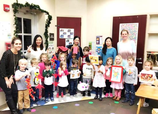 CDRC幼儿园每年圣诞节前,都会举行世界文化节活动,向小朋友们呈现来自世界各地的文化元素。幼儿园负责人热情邀请来自天华的3位老师负责今年的中国文化展示。鉴于圣诞节和中国的春节有着类似的文化内涵,CDRC访学团把文化展示主题确定为“春节”,动手制作了与“中国年”有关的各种小物件作为展示教具。活动中,小朋友们对红包、年画、兔子灯笼、窗花、鞭炮等年味十足的中国元素表现出极大的兴趣,积极和几位老师互动,就连幼儿园的老师们也被我们的展示所吸引,参与到了活动中来。