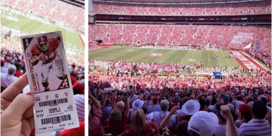 我们有幸观看了首个主场日的比赛。虽然对于赛制规则懵懂,但仍被所现场的热烈气氛感染,情不自禁随着主队的进攻和得分一次次高喊“Roll tide!”