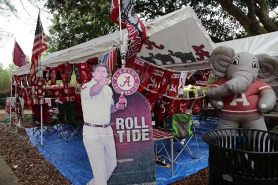 UA的橄榄球队Crimson Tide曾在全美大学橄榄球联赛中六次蝉联冠军,整个学校乃至Tuscaloosa这座城市都以球队为荣。Tailgate Day是主场一方为祝福自己球队获胜而举行系列活动的日子,通常当晚会有重要的赛事举行。