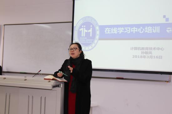 培训开始前,副校长龚春蕾向与会老师讲述了本次培训的意义和具体安排。她指出,建设在线课程是高校老师站稳讲台的前提条件,希望与会老师能够认真学习,在授课的过程中建设和完善配套的在线课程,使之成为教学和建设校级优质、精品课程的重要辅助。