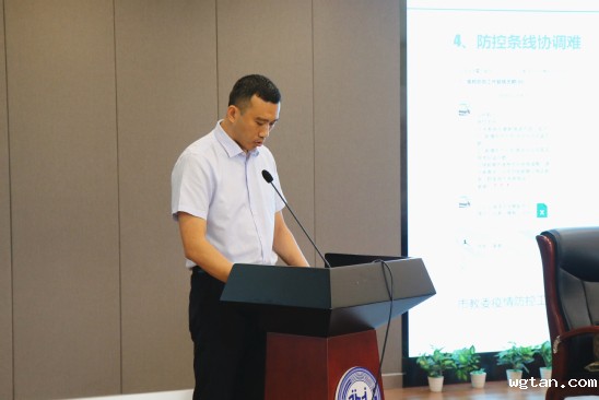 会上,学保处和教务处作为部门代表首先进行经验交流。学保处副处长刘洪伟分享了学保处在疫情防控期间克服了涉及人员分布广、防控时间战线长、安全隐患多、条线协调难等种种困难,在领导高度重视、齐抓共管下,突出校园精准防控,保卫干事不顾个人安危、迎难而上、尽心尽责,助力校园疫情防控,保障校园安全稳定。教务处常务副处长徐振从教学准备、教学实施、教学监督和在线考核四个方面详细介绍了教务部门在这一特殊学期,重点依托超星和钉钉两大平台,紧抓在线教学不放松,严格落实教学目标,提高教学质量,完成教学任务。