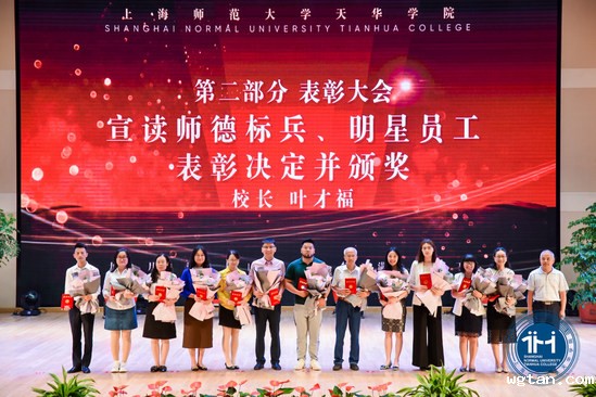 大会进入表彰环节。校长叶才福宣读宣读师德标兵、明星员工的表彰决定,党委书记陆建非宣读第四届上海市高校青年教师教学竞赛表彰决定,总校监郭伟奇宣读教学科研及学科竞赛奖励决定。获奖教师依次上台接受表彰并合影留念。