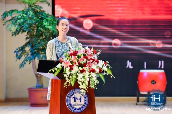 健康学院杨宇然老师作为师德标兵代表发言,回忆了天华建校初期的艰苦情景与发展过程中的不变与改变,探讨了未来要做一名怎样的老师。新教师代表韩笑天也表达了作为新手教师将严谨治学、上下求索、注重创新发展的决心。伴随着新教师们铿锵有力的宣誓,庆祝大会也完美落幕。衷心祝愿所有教职员工节日快乐,也祝愿天华的明天更加美好。