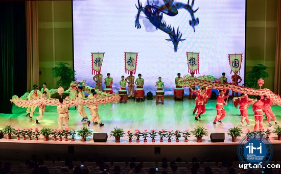 庆祝大会在天华交响乐团一首慷慨激昂的《勇往直前进行曲》中拉开序幕,功夫扇表演《纸扇书生》招式优美、刚柔并济,将“活力天华”生动诠释。十五年风雨兼程,十五年催人奋进,十五年色彩绚烂,十五年荡气回肠,聂晓晶、朱政鑫、陈翠翠、李晖的《风雨同舟十五载,弦歌不辍谱华章》诗朗诵,带我们回溯了天华学院在追求教育理想道路上的铿锵歌唱。沈桐羽老师的独唱《飞来的花瓣》和学生舞龙表演,展示了学校师生良好的精神风貌。刘舒倩老师的现场互动《即兴人声》将整个表演推向了高潮,在全体教职员工的共同配合下,为建校十五周年献上了一段深情的祝福。